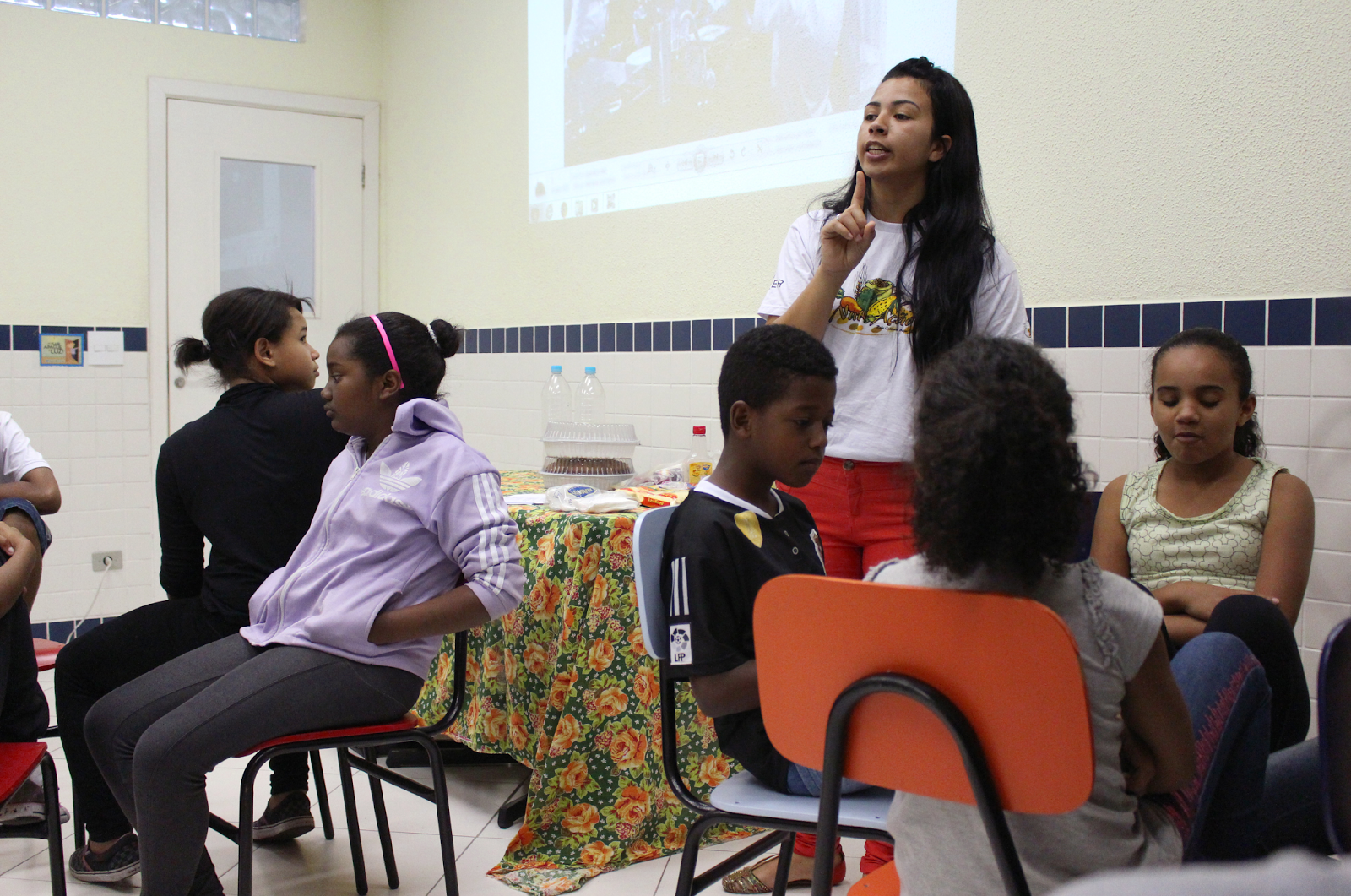O que é melhor para nossa saúde senão a prevenção, e o que pode ser melhor do que nos alimentarmos bem? Foi assim que as jovens Léa, Juliana e Luciene, representantes do projeto Nutrição, da Rede Cultural Beija Flor, falaram sobre reaproveitamento de alimentos, a importância da qualidade de alimentos que se coloca no prato de acordo com a refeição feita, sobre o que são alimentos transgênicos e o mal que causam. Nossas crianças ainda puderam degustar bolo de casca de banana e suco feito também a partir de cascas.