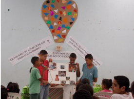 Em contraponto ao 1º Fórum “Chorar sobre o leite derramado”, este mês falamos sobre o que é possível fazer para amenizar as situações levantadas, que estão postas no bairro, ou pelo menos não contribuir para que elas piorem. Também foi um dia para levantarmos o lado bom do bairro, as coisas positivas. As crianças e adolescentes reconheceram que tanto o posto de saúde, quanto a quantidade de escolas existentes no bairro são um ponto positivo, apesar de reconhecerem a falta de eficiência nestes serviços. O transporte público também é considerado como ponto forte do bairro, pois na avenida principal que corta o bairro, existe transporte que pode levar as pessoas a qualquer lugar de São Paulo. Quanto às soluções para os problemas, eles, conjecturando, chegaram à conclusão de que somente com a união da população é possível resolvê-los. Alegam que sozinho é praticamente impossível. E que as pessoas precisam se unir para realizar coisas boas para o bairro ou para, através de abaixo assinados, cobrar que as autoridades o façam.Por Camille e Daiane